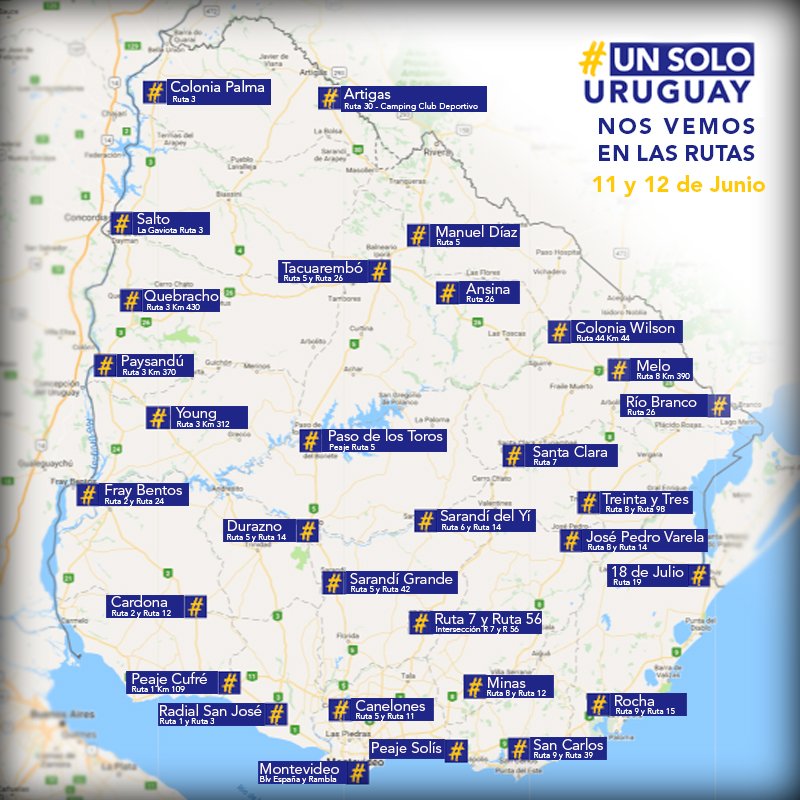 El movimiento Un Solo Uruguay vuelve a movilizarse en las rutas de todo el país este lunes y martes en reclamo de respuestas a sus reclamos por parte del gobierno. Habrá más de 30 puntos de concentración en rutas nacionales y también en Montevideo.